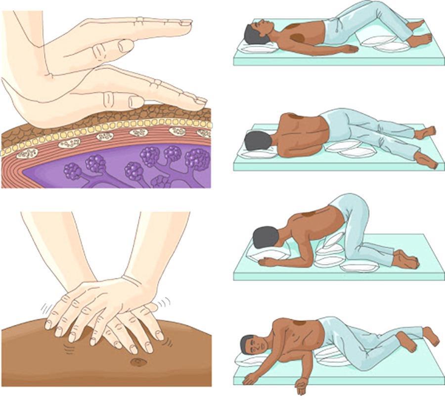 Place pillows under the hips to guarantee that the chest is lower than the hips.