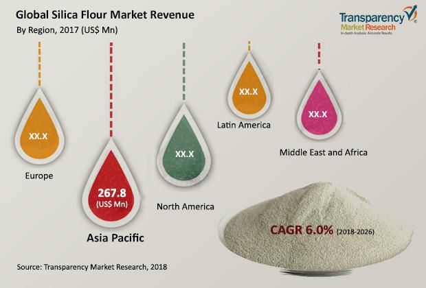 Transparency Market Research (TMR) finds that the global silica flour market would expand at a steady CAGR of 5.0% during the period between 2018 and 2026. The global silica flour market has a total worth of US$ 655.0 Mn in 2017, and is expected to reach new heights by the end of the forecast period. On the basis of geography, the demand for silica flour in North America has been rising at a stellar rate.