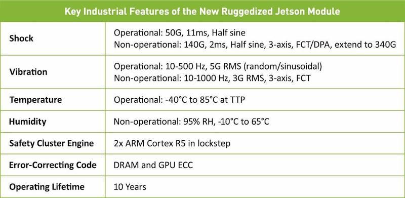 It comes in a compact, power-efficient design and reliably delivers up to 30 trillion operations per second (TOPS) of AI performance. Built with components tested to demanding industrial standards and including new functional safety capabilities, it's able to withstand severe shock and vibration and extreme temperature ranges. And its pin-, software- and form-factor compatible with the existing Jetson AGX Xavier module, so upgrading is easy.