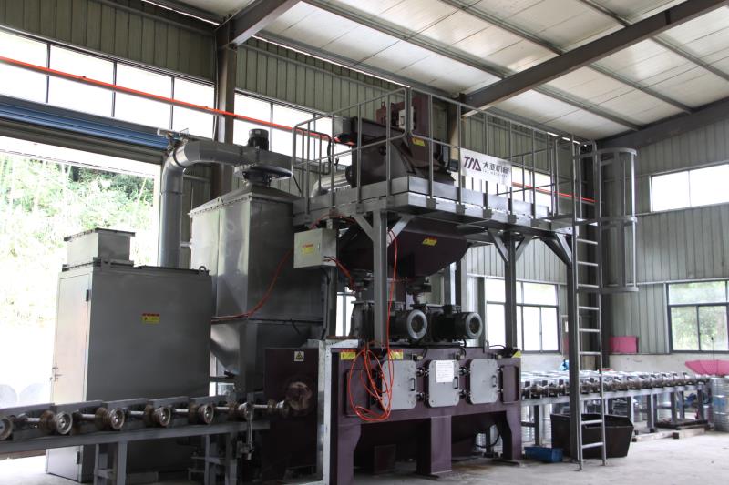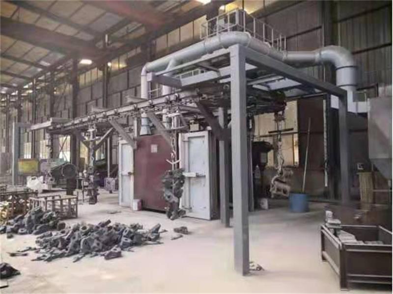 Overhead Rail shot blast machine: It is suitable for shot blasting of small iron castings, steel castings, forgings and stamping parts, especially for the cleaning of forgings and castings, so as to remove the bonded sand, rust, oxide scale and dirt on the surface of the workpiece, make the surface of the workpiece with the natural color of metal, eliminate the internal stress and improve the fatigue resistance of the workpiece, increase the adhesion of paint film when painting the workpiece, finally to improve the surface and internal quality of the workpiece.