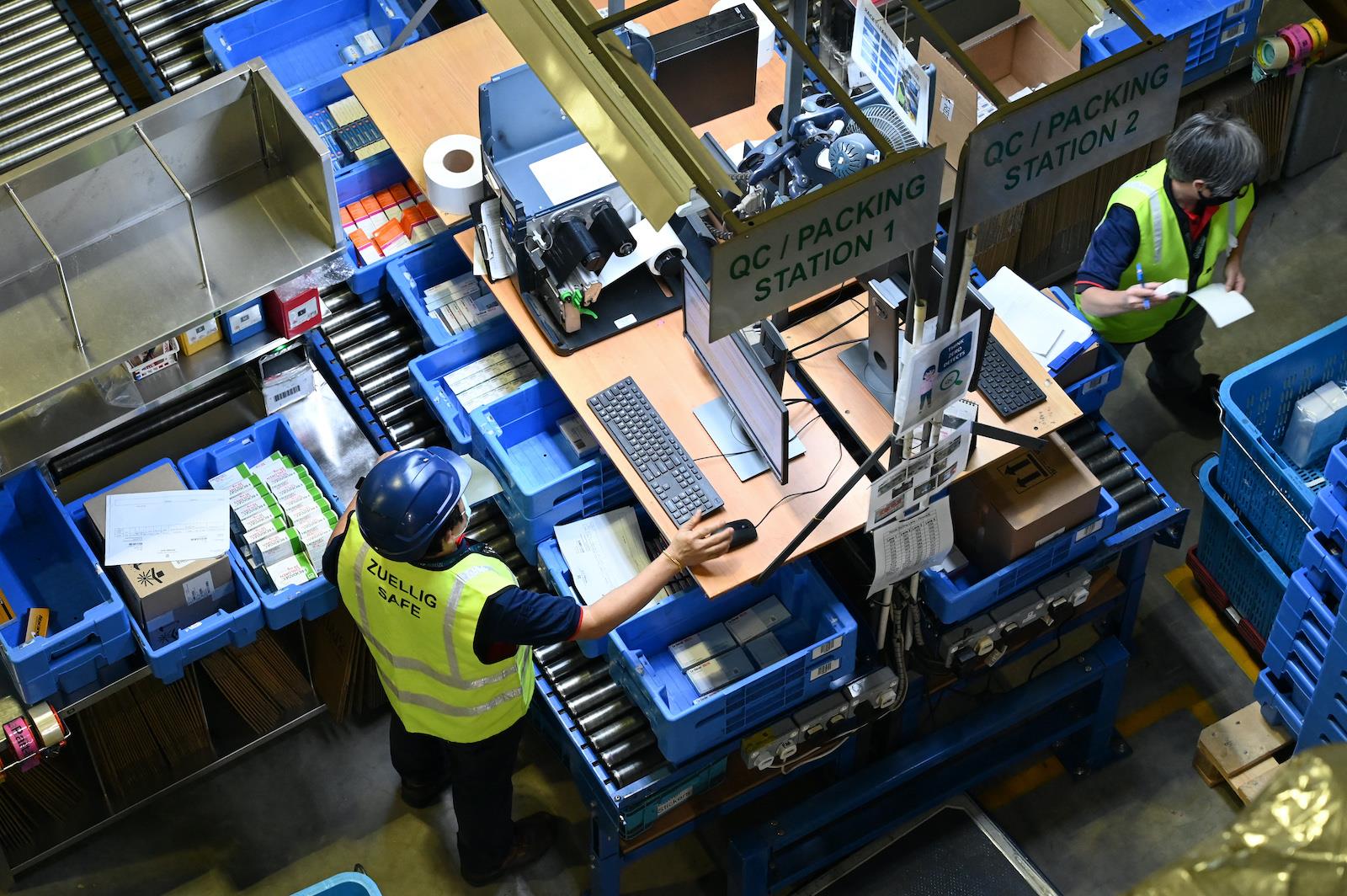 Quality control and packing of pharmaceutical products inside coldroom storage at the Zuellig Pharma facility in Singapore, January 20, 2021. Photo: AFP / Roslan Rahman