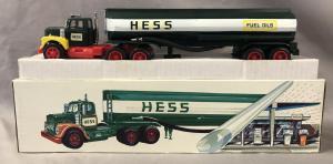 Vintage 1969 Hess “Woodbridge” tanker truck with the original box, made by Marx in Hong Kong, battery-operated, with all decals present ($4,200).