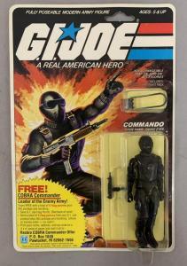 Highly coveted by collectors 1982 mint-on-card GI Joe Commando Snake Eyes, 9 Back, series 1 / version 1 action figure by Hasbro, never removed from the card ($7,200).