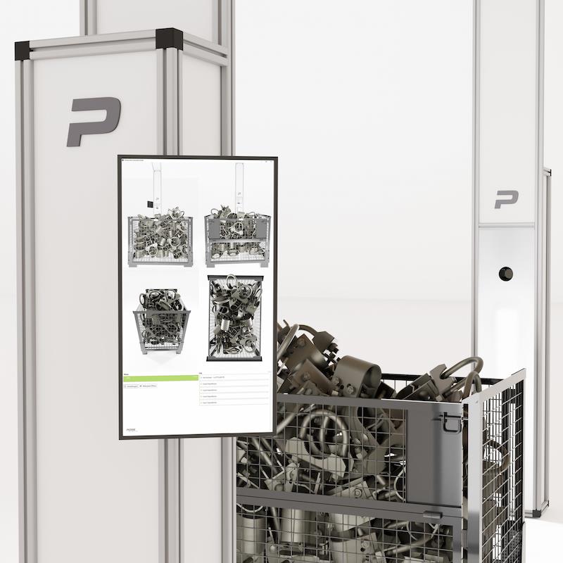 The P.Portal is used at Schnellecke to inspect containers with components. For the purpose of documentation and proof in the event of complaints, the filled containers must be photographed.