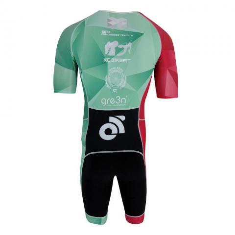 Other design benefits include]improved aerodynamic capability and a triathlon-specific chamois designed to be comfortable throughout the triathlon's swim, cycle, and run stages.