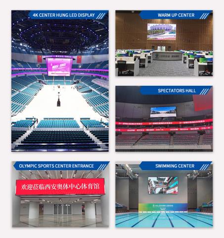 Xi’an Olympic Sports Center is the main venue of this National Games with a total area of 520,500㎡. The entrance and exit screens in the Xi’an Olympic Sports Center Gymnasium, the center hung bucket-shaped screen, the end LED screen, the LED screen in the swimming pool, the LED screen in the warm-up hall and other high-definition LED displays are all exclusively designed and manufactured by Shanghai Sansi with a total area of nearly 900m².
