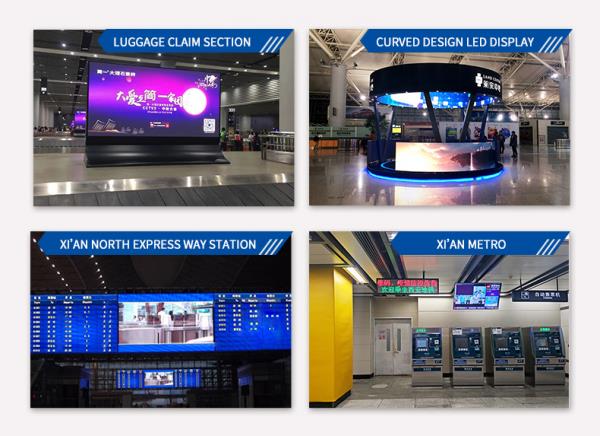 LED display screens, LED lighting fixtures and integrated intelligent systems have gradually become one of the standards for modern rail and transit constructions. The LED displays, LED lighting products and service system in Metro Line 3 and Line 5 in Xi’an are also provided by Sansi. And also in Xianyang International Airport, the curved indoor high-definition full-color LED screen placed in the center of the waiting hall was also exclusively designed and manufactured by Sansi, possessing seamless splicing, clear and delicate pictures and 360°graphic information playback; that it improves the overall image of the airport.