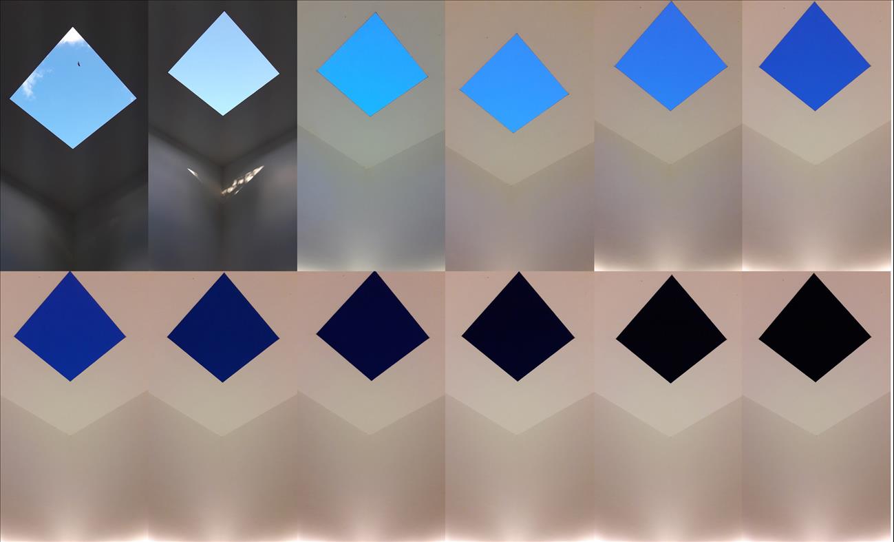 The sky seen directly above and explored from within the Deer Shelter Skyscape installation by James Turrell in the Yorkshire Sculpture Park. Author provided Adding white