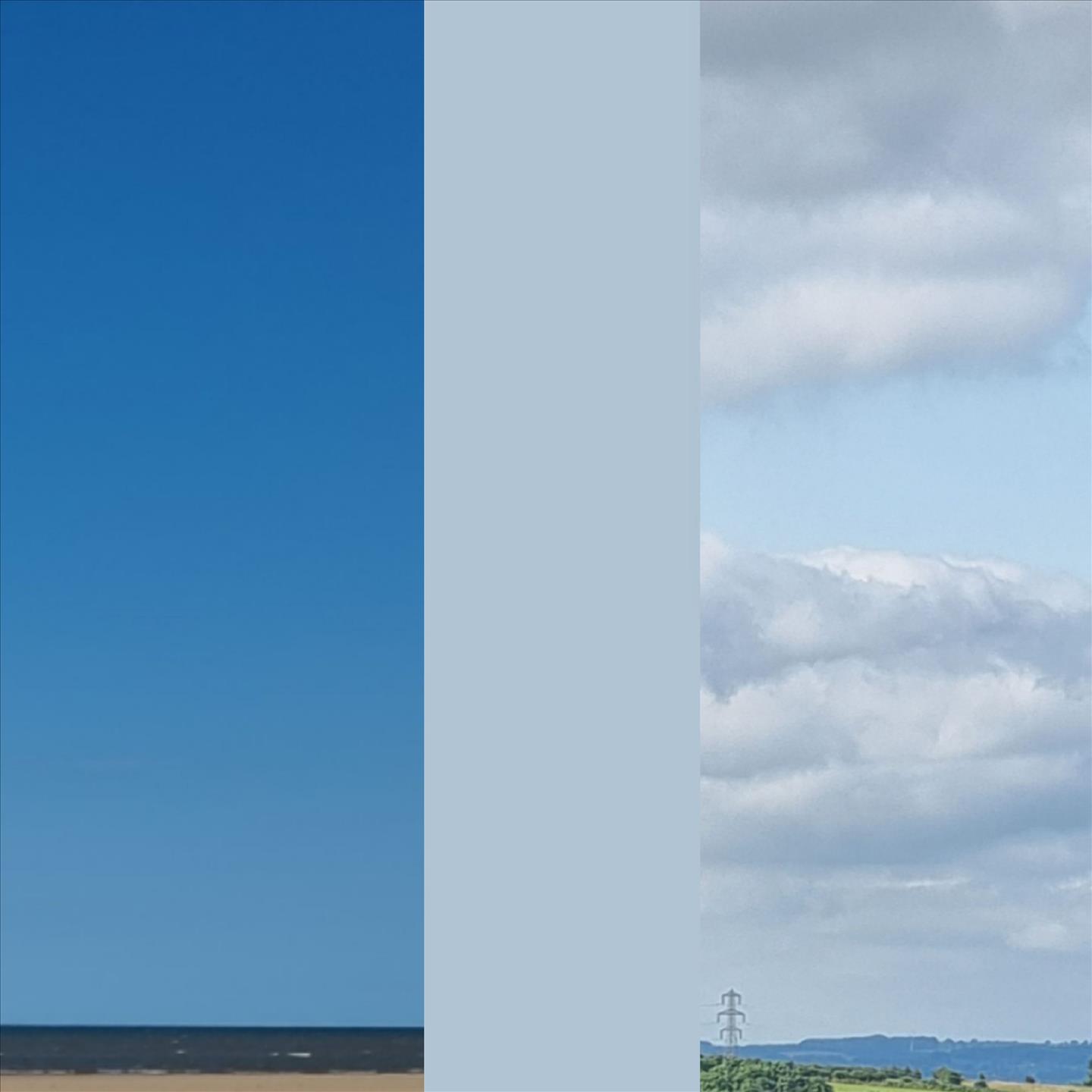 The influence of white within the blue of the sky becomes stronger towards the horizon where the light has to pass through much more atmosphere to arrive at the observer. The various tones and shades of blue observed become nature's visualisation of what the atmosphere is currently composed of. The whiter it appears, the more extra particles are present.