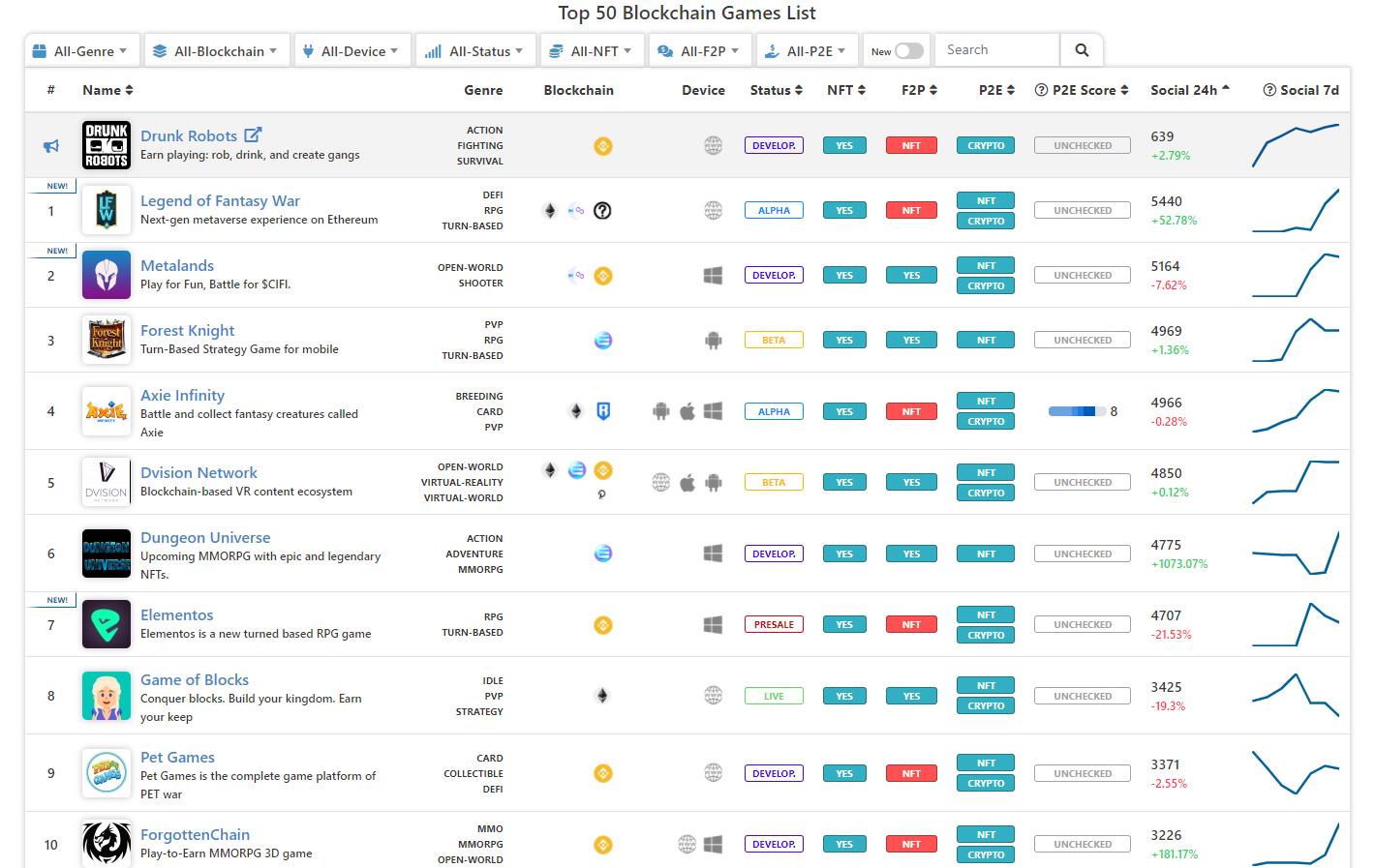 As well as listing all known blockchain games, PlayToEarn has created a list of all blockchain game supported cryptocurrencies and NFTs to help site visitors, as well as an extensive list of virtual world game land buildings for gamers who wish to delve a bit deeper.