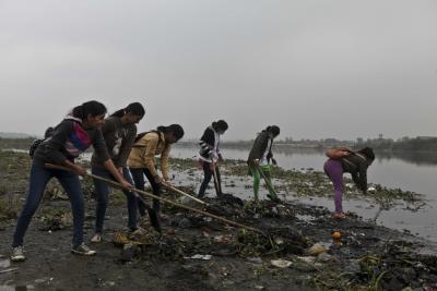 Agra, Oct 2 (IANS) Scores of green and river activists celebrated Mahatma Gandhi's birth anniversary early on Saturday by offering shram daan, to clean the Yamuna river bank.