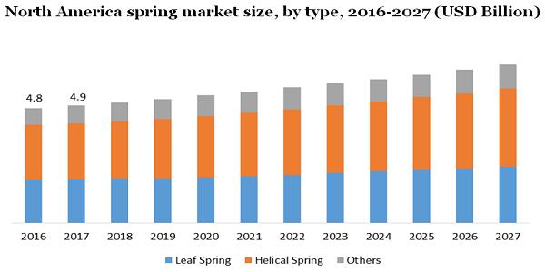 Asia Pacific is expected to attain a significant growth from 2020 to 2027 owing to presence of better and cheap manufacturing facilities in developing countries such as China and India. In addition, cheap labor, raw materials, and other resources is the major factor projected to propel the regional market. Europe held the significant market share across the global spring market owing to presence of deeply rooted manufacturers in this region. In addition, rising preference for electric vehicles among the consumers in this region is anticipated to further contribute to the market growth.