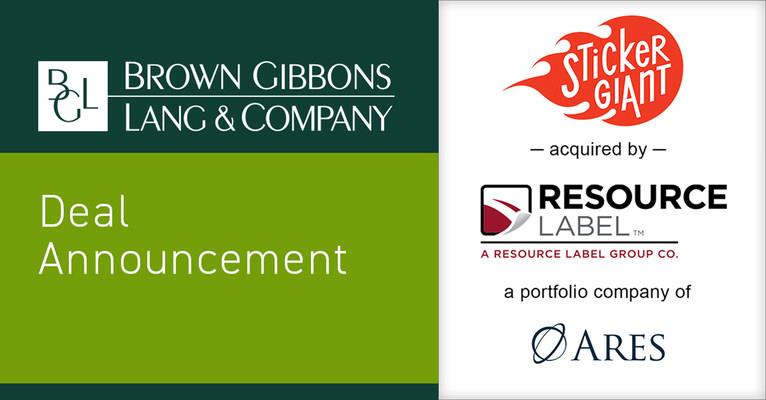 (MENAFN- PR Newswire) CHICAGO, Oct. 7, 2021 /PRNewswire/ -- Brown Gibbons Lang & Company (BGL) is pleased to announce the sale of StickerGiant.com, Inc. (StickerGiant), to Resource Label Group, LLC (Resource Label), a portfolio company of Ares Management Corporation. The specific terms of the transaction were not disclosed.