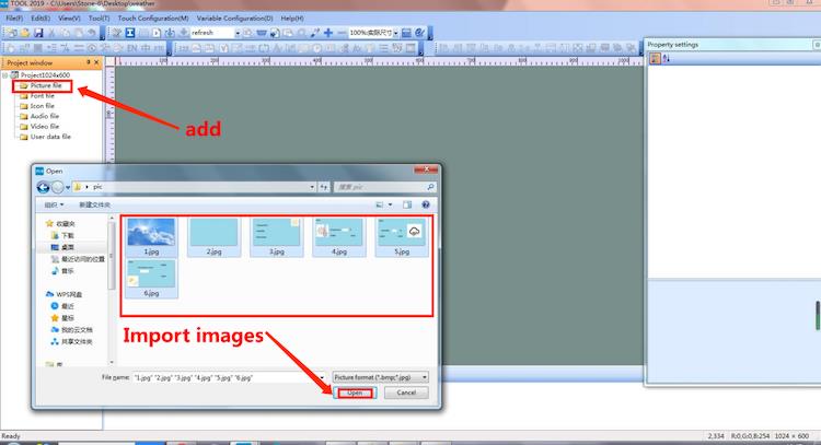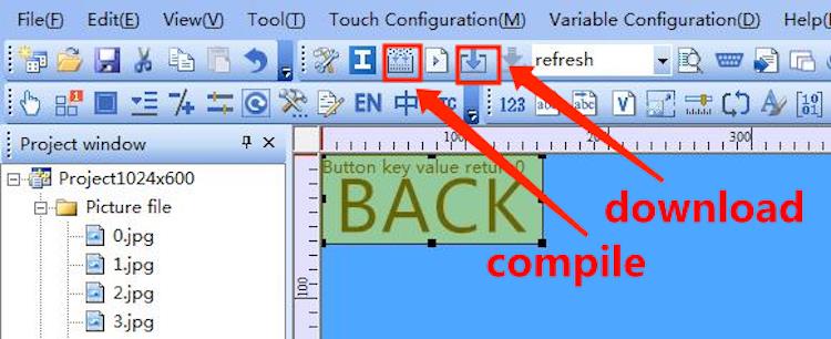 We just need to add the designed UI images through menu bar options for buttons, text boxes, background images, and page logic through the host computer, then generate the configuration file, and finally download it into the display and it is ready to run.