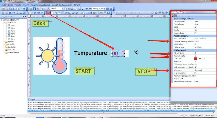 First of all, you need to set the variable address of the control, this address is very important, the data of the micro-controller can only be displayed by sending data to this address, and then set the format of the display, here choose 2 integers and 1 decimal.
