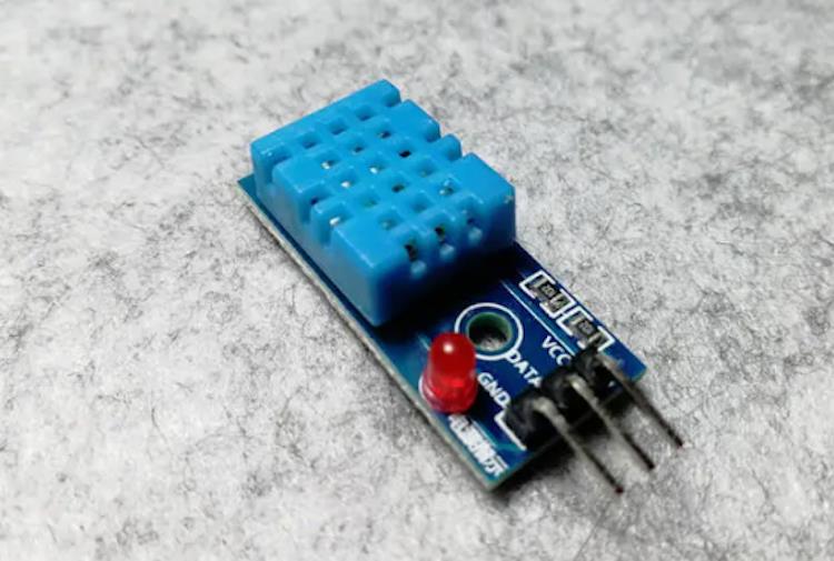The DHT11 is an all-in-one temperature and humidity digital sensor that includes an internal resistive moisture measurement element and an NTC temperature measurement element and is connected to a high performance 8-bit micro-controller.