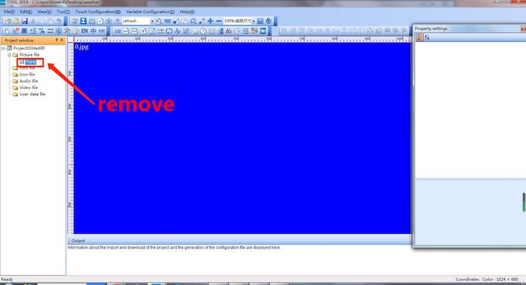 After the completion of the previous step, the default blue background image will be deleted first, and then you need to add the images that need to be used for this application, which are made in advance. The size of the background image needs to be the same as the actual size of the screen, that is, 1024 * 600.