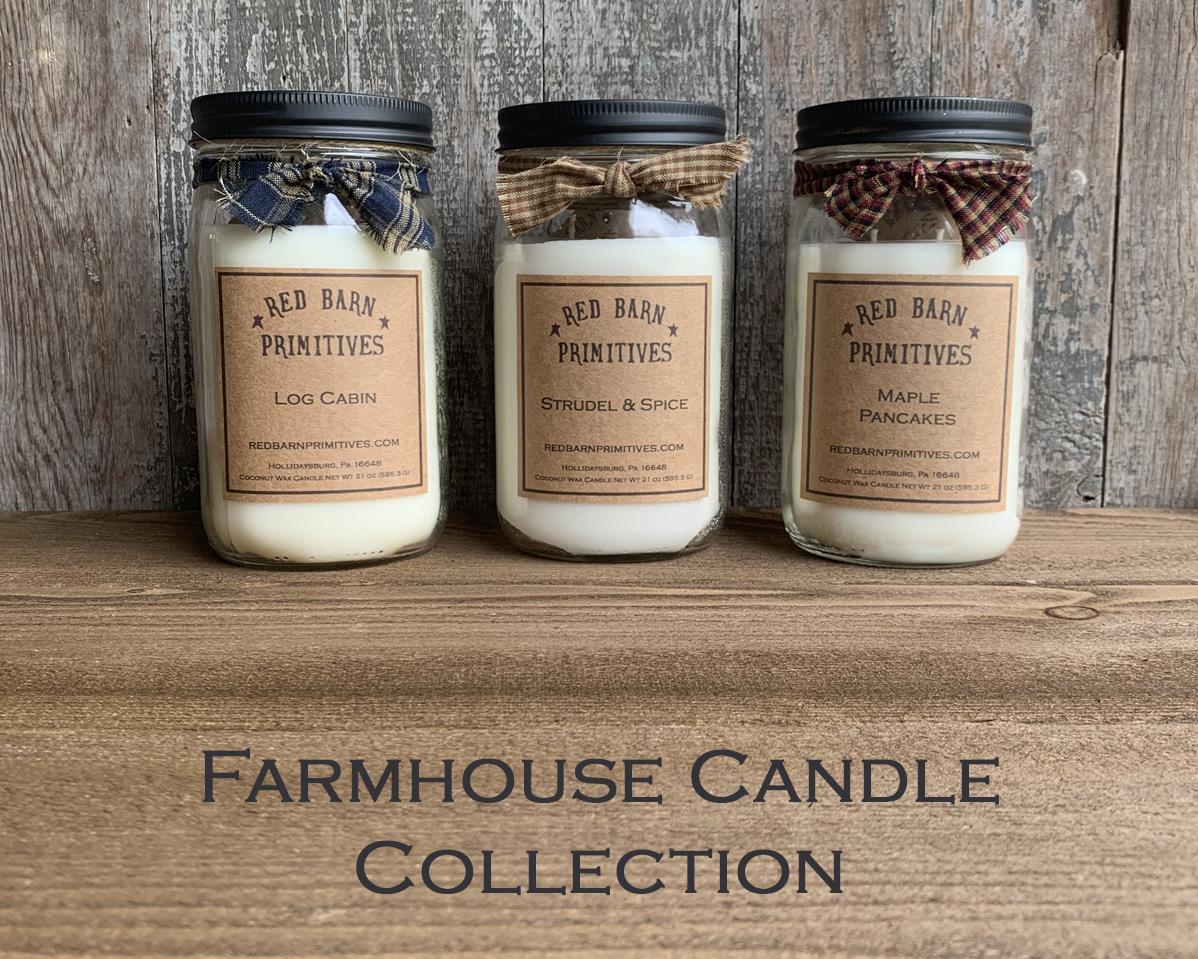 HOLLIDAYSBURG, PENNSYLVANIA, UNITED STATES, October 19, 2021 /EINPresswire.com / -- Red Barn Primitives , an innovator in home fragrances, today announces the launch of its new Farmhouse Candle Collection . The new product line features rustic vessel designs and comforting new scents, all marked by the brand's commitment to cleaner, slower-burning candles thanks to its use of coconut wax. The collection breathes new life into Red Barn Primitives' designs with delicious scents celebrating farmhouse life, as well as home-spun materials embellishments and hand-stamped lids featuring the brand's logo.The Farmhouse Candle Collection is Red Barn Primitives' signature collection, adding to the brand's lineup of home fragrance products, including wax melts, potpourri, scented oils, and other scented gifts. The collection celebrates a slower pace of life on the farm by filling homes with scents everyone will love. Featured scents in the Farmhouse Candle Collection include Banana Nut Bread, Brown Sugar & Figs, Fallen Leaves, Log Cabin, Maple Pancakes, Pumpkin Caramel Crunch, and Strudel & Spice.