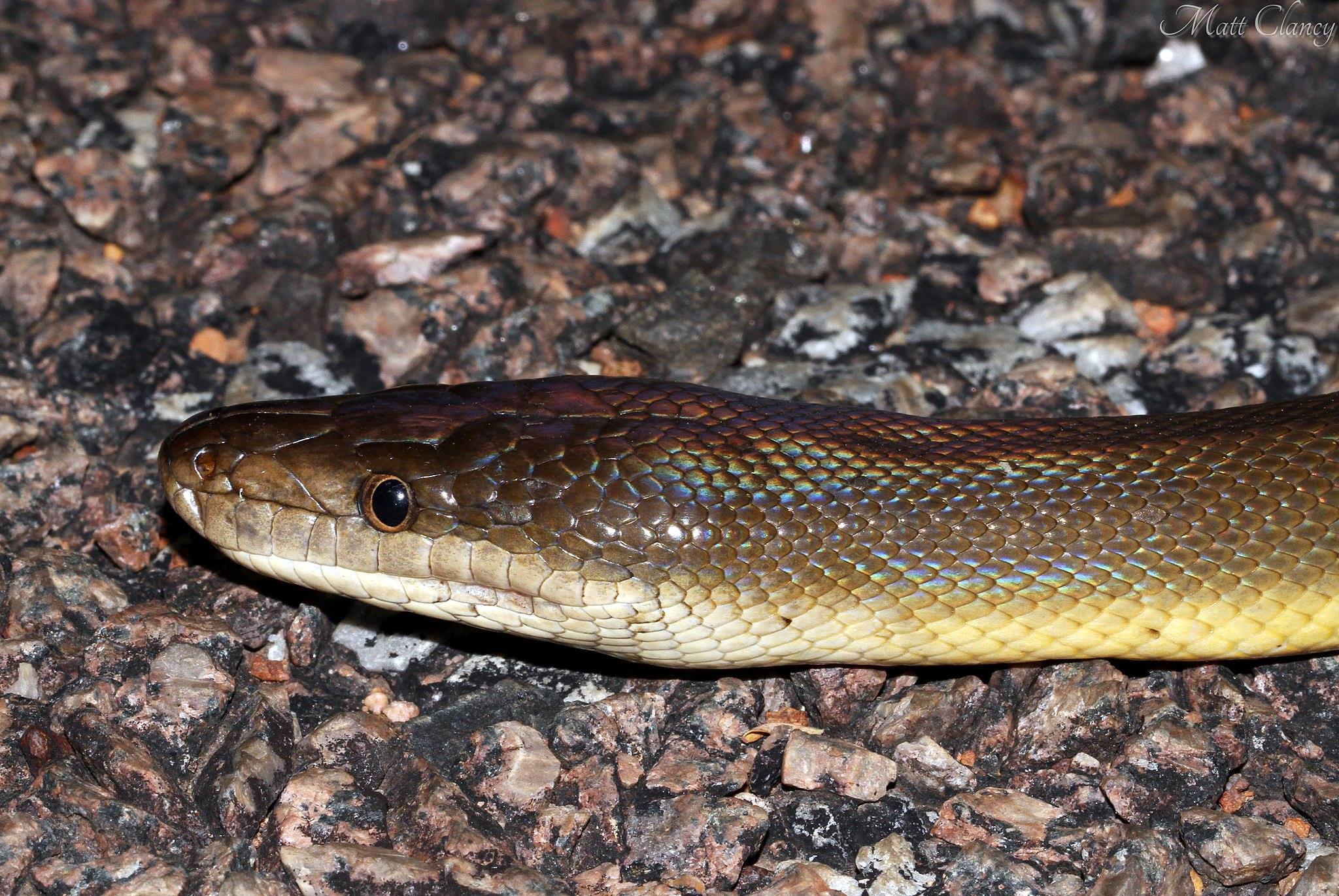 But sometimes, like for Australian water pythons, the outer layer of scales can shine rainbow colours when the light hits it at the right angle.