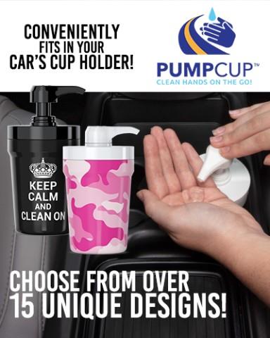 Meet PumpCup®, the Refillable Hand Sanitizer Dispenser That Conveniently Fits in a Car's Cup Holder