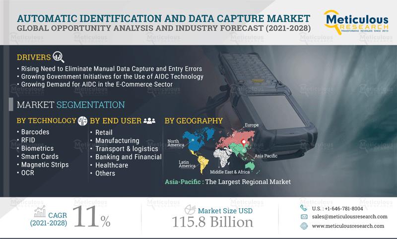 Automatic Identification and Data Capture Market: Meticulous Research® Reveals Why This Market is Growing at a CAGR of 11% to Reach $115.8 Billion by 2028