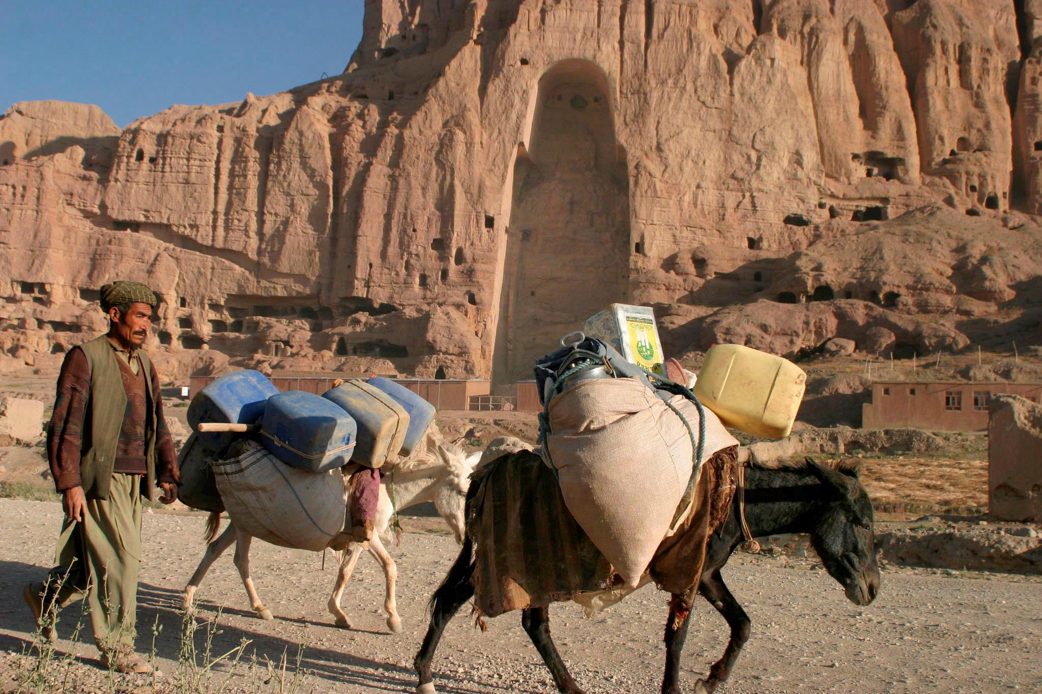 An Afghan Hazara man walks by the Buddha caves, August 2005. The monumental Buddha statues of Bamiyan were, until their destruction, one of the best-known historic and cultural sights of Afghanistan. Syed Jan Sabawoon/EPA-EFE