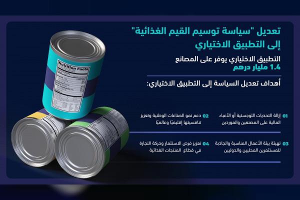 ABU DHABI,11th December 2021 (WAM) - In line with the UAE government's focus on supporting the performance and competitiveness of the industrial sector and easing procedures, the UAE Cabinet has amended the requirement for nutritional labelling under the standard No. UAE.S 5034: 2018 (Nutritional labelling of pre-packed products as traffic light colors) from mandatory to voluntary. Under the standard, which was scheduled to become mandatory in early January 2022, manufacturers were required to provide a color-coded system of nutritional data in all pre-packed food products.