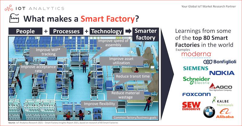 IoT Analytics , a provider of market insights and competitive intelligence for the Internet of Things and Industry 4.0, has published a 163-page Smart Factories Insights Report 2021 discovering 80 smart factories, portraying 10 of them in detail, and highlighting commonalities and best-practices.