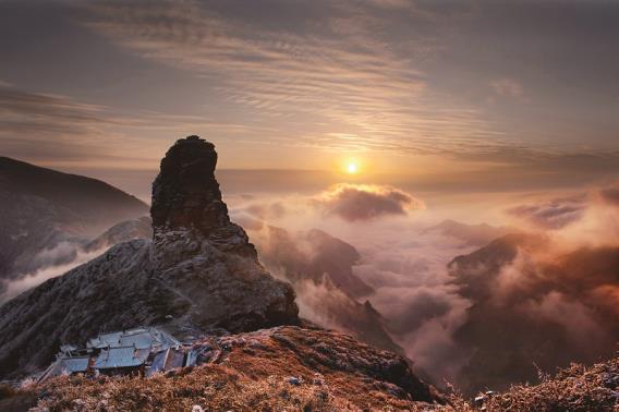 Fanjing means“Brahma's Pure Land”, indicating its link to Buddhism. The mountain is located in Tongren city, Guizhou Province. Its peak is more than 2,500 meters high and the total area is over 560 square kilometers with a forest coverage rate of 95%. More than 2,000 kinds of plants and 800 kinds of animals can be found there. In 2018, Fanjing Mountain was listed as a World Natural Heritage site.