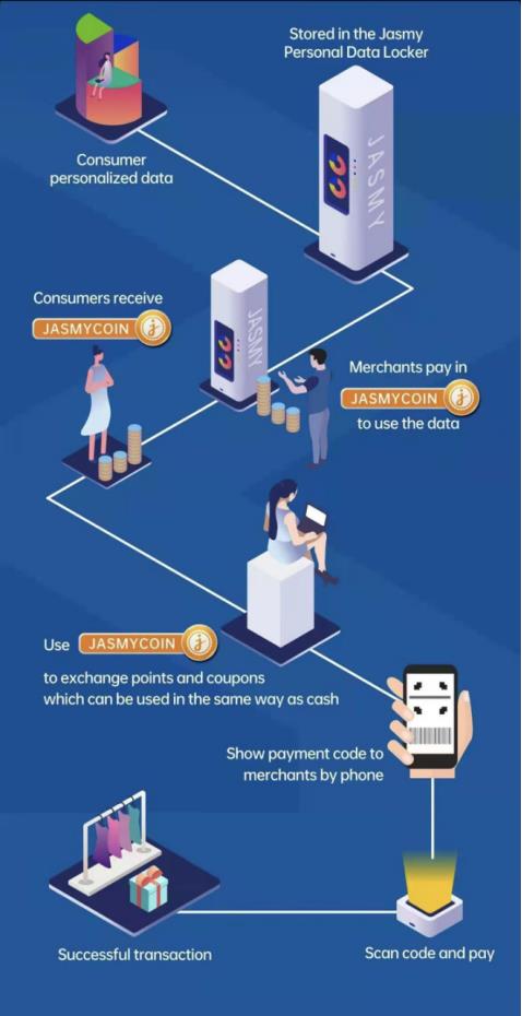 On the other hand, JASMYCoin provides accumulated personal data in case they want to use the data stored in the personal data cabinet generated in its service. Therefore, JasmyCoin is the only valid currency for the value of personal data on the platform.