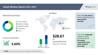 NEW YORK, Jan. 24, 2022 /PRNewswire/ -- As per the latest research report, 'Whiskey Market by Product, Distribution Channel, and Geography - Forecast and Analysis 2021-2025 ', the increasing number of new product launches by the players is notably driving the whiskey market growth.