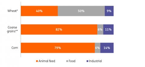 Source: European Commission, ING research, *includes common and durum wheat, **coarse grains mainly concern barley and triticale