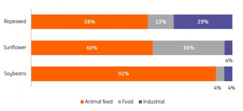 Food: demand shift rather than demand growthThe EU is expected to reach a peak in population in the second half of this decade and, as such, there is not much growth in total food demand. Bakery products are a major food application for grains and demand from the bakery industry. In France, for example, the bakery sector is responsible for a quarter of total domestic wheat use. But both grains and oilseeds are being used as an ingredient in a much wider range of daily groceries. What these categories have in common is the trend towards healthier and more sustainable products. The broader introduction of gluten-free and organic products in categories like pasta provides an example. Furthermore, the roll-out of food labels like Nutri-Score could lead to increased use of wholegrain ingredients and certain vegetable oils such as rapeseed, as food manufacturers look for ways to improve the nutritional label on their products.