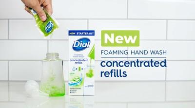 With their long-standing history of supporting handwashing education, healthy hygiene habits, and sustainability practices, Dial provides the clean consumers count on. As Dial continues to look towards the brand's future, they have focused on sustainability with their newest game changing innovation Dial Concentrated Refills. Consumers are washing their hands more than ever before and the average consumer uses more than 8 single used plastic bottles per year (based on Numerator Shopper Metrics Report, last 52 weeks ending 3-7-21). To reduce single use plastic, we've launched a solution: Concentrated refills that use 95% less plastic (using (1) packet vs purchasing (1) Dial 7.5oz foaming soap bottle.) An accessible, reliable, and easy way to lessen the impact on the planet. The Concentrated Refills carton packaging is made with 100% paper-based materials and the packets are recyclable through the Dial partnership with TerraCycle.