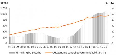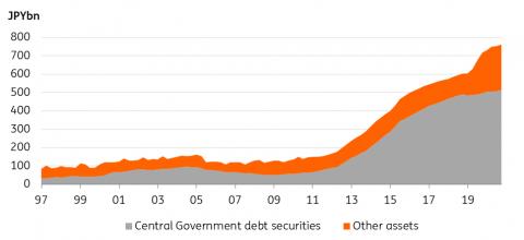 The adoption of yield curve control in 2016 took some pressure off the prevailing Qualitative and Quantitative Easing (QQE) programme which the BoJ had earlier relied on. That policy committed to buying certain quantities of bonds and other assets (exchange-traded funds, corporate bonds and Japan's real estate investment trust). The addition of a 10Y JGB yield target in 2016 was itself a marginal adjustment to the policy. The numerical targets for JGBs remained but were quietly dropped in January 2021 to be replaced by a commitment to purchases“without an upper limit” to achieve the zero interest rate target (numerical targets for the other asset types remained).