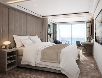 Through an innovative structural design – in which the superstructure is brought inside the ship and enlarged floor-to-ceiling windows replace exterior walls in select suites – each suite provides guests with an immersive connection with the outside world. All suites feature a private balcony with a stunning glass balustrade and spectacular views from most living spaces, enabling a seamless openness to the destination.