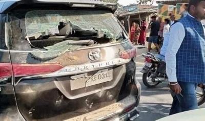Several vehicles in the former minister's convoy were damaged in stone pelting that took place in Khalwa Patti village.