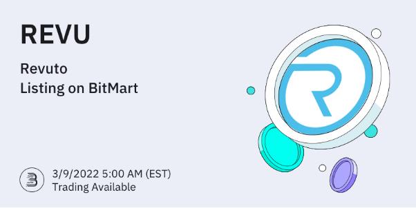 BitMart, a premier global digital asset trading platform, will list Revuto (REVU) on March 9, 2022. The REVU/USDT trading pair will be officially available for trading at 05:00 AM EST for all BitMart users.