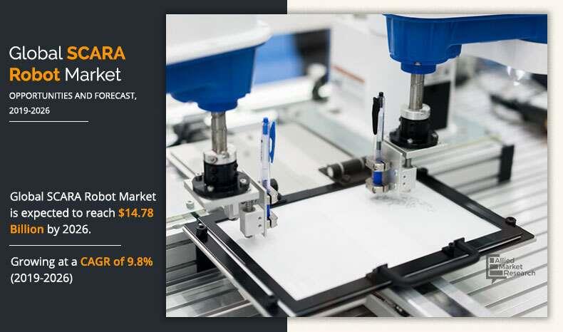 OREGAON, PORTLAND, UNITED STATES, March 21, 2022 /EINPresswire.com / -- Allied Market Research published a report, titled,“SCARA Robot Market by Payload Capacity (Up to 5.0 kg, 5.01 to 15.0 kg, and More than 15.0 kg), Application (Material Handling, Assembling and dissembling, Wielding & Soldering, Dispensing, Processing, and Others), and Industry Vertical (Electrical & Electronics, Automotive, Food & Beverages, Pharmaceuticals, Metal & Machinery, and Others): Global Opportunity Analysis and Industry Forecast, 2019–2026” The report offers a detailed analysis of changing market dynamics, key segments, value chain, top investment pockets, competitive scenario, and regional landscape.