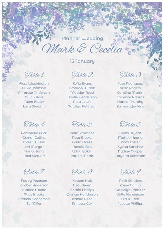 Floral Wedding Planner – free Google Docs TemplateThe design of this template is just stunning. It is suitable for those who want to plan the placement of the guests at the wedding. This is a must for every wedding, so if you've been looking for a template for this need, you've already found it.