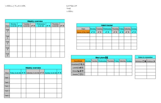 Weekly Online Planner – free Google Docs TemplateThe handy all-in-one planner is one of the most feature-packed options in this category. You will take advantage of all the benefits of planning at once: for meals, the most important and secondary events, and general planning of your time. Become many times more effective in just a few minutes!