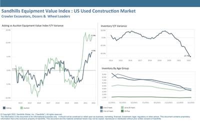 Chart Takeaways Sandhills Market Reports highlight the most significant changes in Sandhills' used heavy-duty truck, construction equipment, and farm machinery markets. Each report includes detailed analysis and charts that help readers visualize the data. The following charts display historical asking and auction values for each market, as well as overall inventory levels and age-group breakdowns, to paint a picture of recent supply and demand trends.