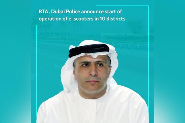 DUBAI, 10th April, 2022 (WAM) -- Dubai's Roads and Transport Authority (RTA) and the General HQ of Dubai Police have announced the start of the operation of electric scooters on permitted cycling tracks in 10 districts across Dubai starting Wednesday, April 13, 2022.