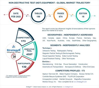 SAN FRANCISCO , April 18, 2022 /PRNewswire/ -- A new market study published by Global Industry Analysts Inc., (GIA) the premier market research company, today released its report titled 'Non-Destructive Test (NDT) Equipment - Global Market Trajectory & Analytics' . The report presents fresh perspectives on opportunities and challenges in a significantly transformed post COVID-19 marketplace.