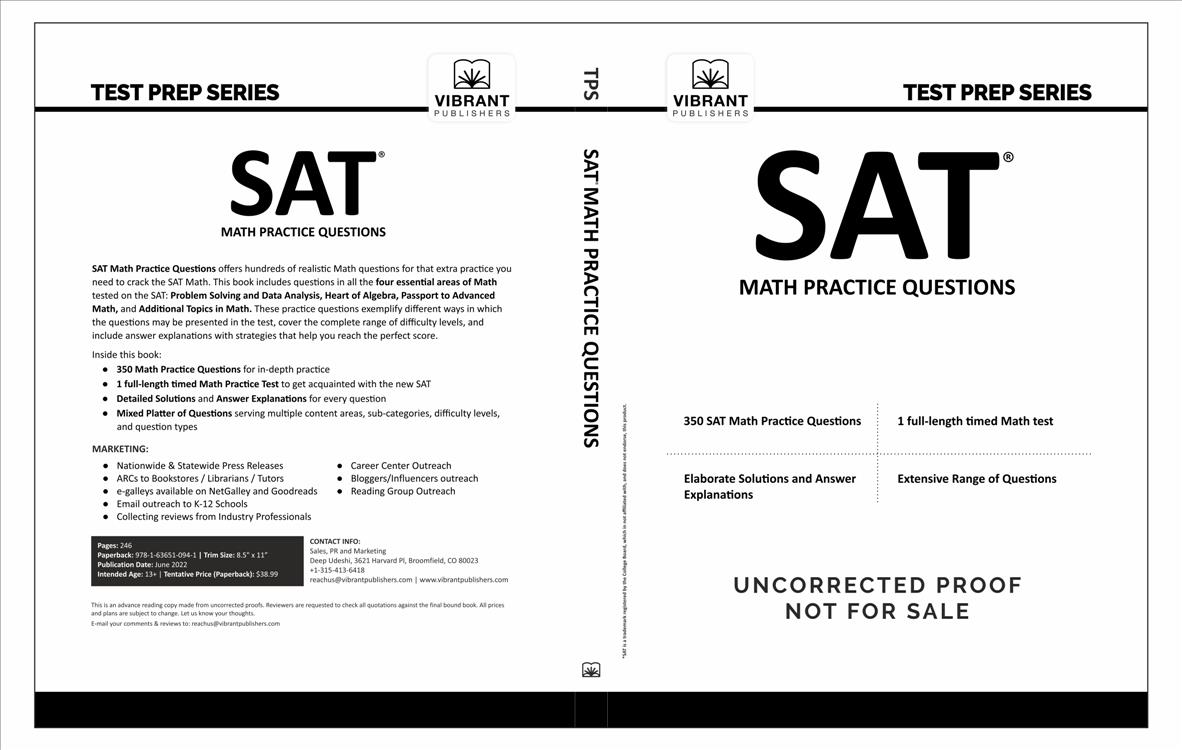 BROOMFIELD, COLORADO, US, April 21, 2022 /EINPresswire.com / -- Vibrant Publisher's SAT Math Practice Questions is now available for review on NetGalley. This book is an expertly-crafted guide that provides systematic and thorough practice for the math section of the SAT. Vibrant Publishers invites industry experts, librarians, book reviewers, and booksellers to read and review the book on NetGalley now.