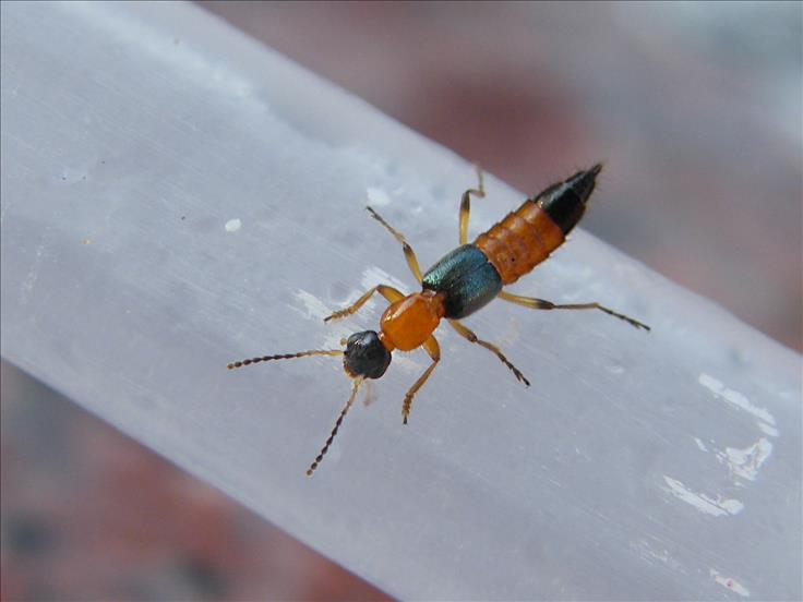 The two species of rove beetles known as“Nairobi fly”, and many other species of Paederus, are obvious due to their red and black colouration; warning colours of their toxicity. They also have a very long body, typical of rove beetles.