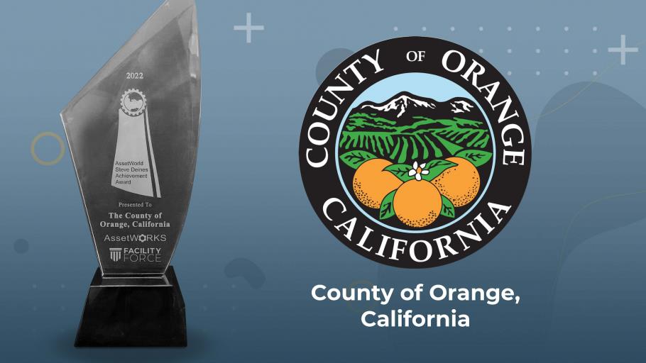 FacilityForce is pleased to announce the County of Orange California as the 2022 AssetWorld Steve Deines Achievement Award winner. Congratulations to the County of Orange!