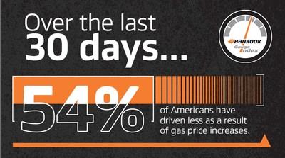 Hankook Tire's Gauge Index found that over the last 30 days, 54 percent of Americans have driven less as a result of gas price increases.
