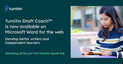 OAKLAND. Calif., June 28, 2022 /PRNewswire/ -- Turnitin , a leading provider of academic integrity, assessment, and writing solutions, announced today that its Turnitin Draft Coach feature is now available on Microsoft Word for the web . The announcement was made at the International Society for Technology in Education conference and expo in New Orleans: ISTELive 22 at Turnitin booth 518 .