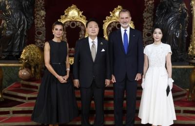 Madrid, June 29 (IANS) South Korean First lady Kim Keon-hee and Queen Letizia of Spain talked about being the same age and the excellence of South Korean beauty products during a gala dinner in Madrid the previous day, the presidential office said Wednesday.